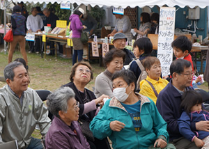 老若男女、みなさん歌に聞き入ってくださりました。周りにはおいしいものの屋台もたくさん!たのしいお祭りです。 |