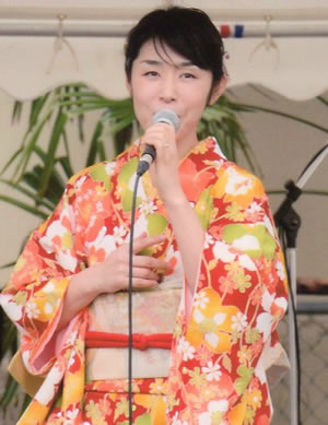 | この日は五木ひろしさんとのデュエット「相惚れ川」や「天城越え」など4曲を披露 | 風が強く、前髪をピンで止めさせてもらってます。でも、気持ちよく歌って東逗子教室PRもしっかりいたしました!みなさんお教室に来てね! |