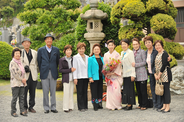 | 本光寺境内にての記念写真。無事に終わって笑顔です | |